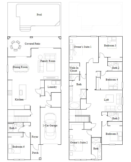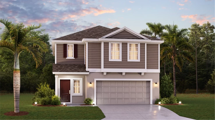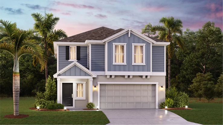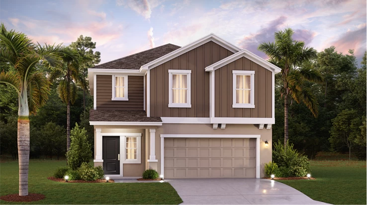 Este nuevo diseño de casa de dos pisos combina estilo y comodidad. El primer piso muestra un diseño de planta abierta entre una sala de estar para momentos compartidos, un comedor para comidas memorables y una cocina para cocineros aventureros, además de una terraza para vivir al aire libre. El segundo piso cuenta con una lujosa suite del propietario, tres tranquilos dormitorios secundarios y un loft versátil.