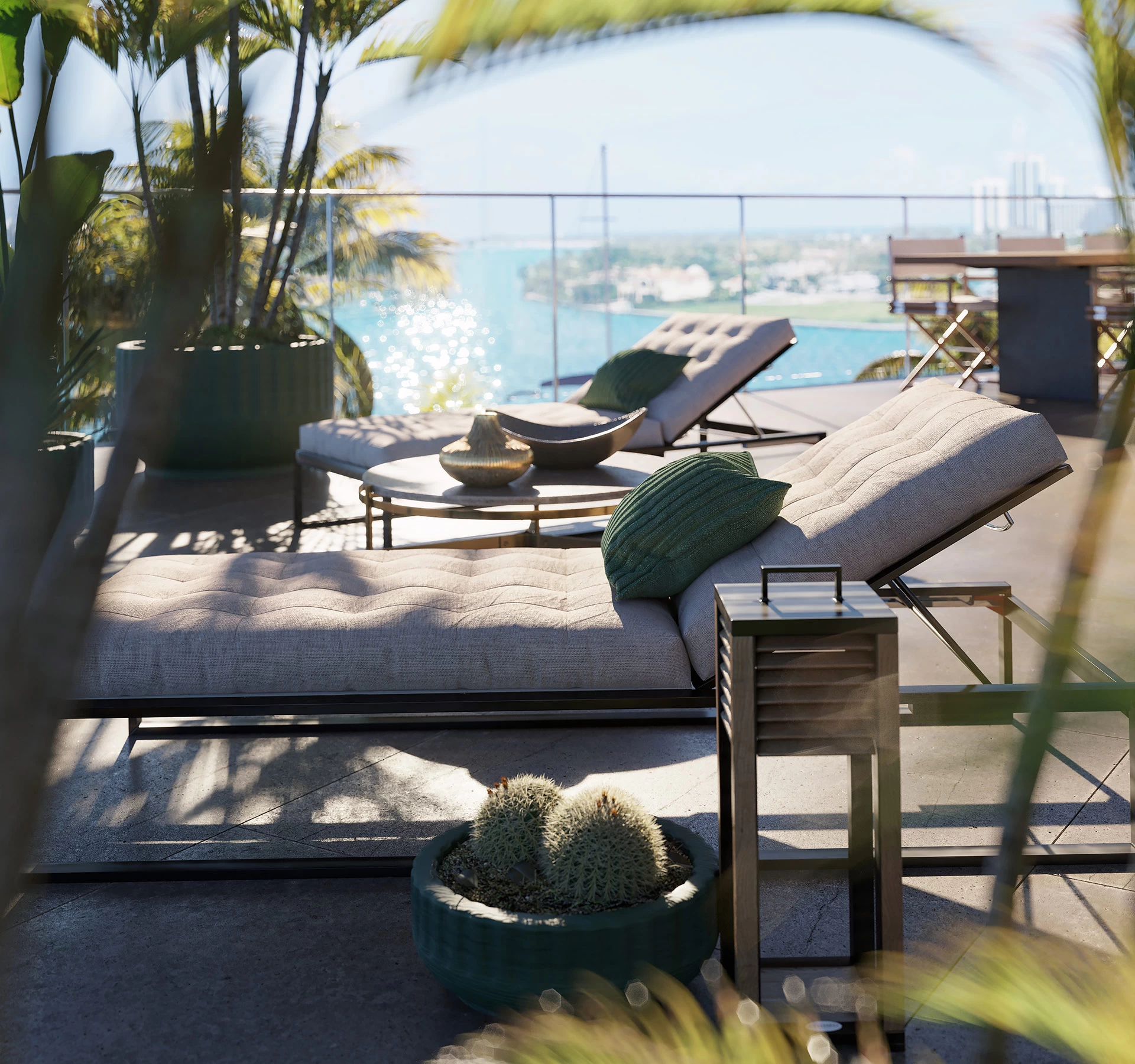 La vista desde Bay Harbor Islands no tiene igual: las tranquilas aguas azul verdosas rodean Onda y capturan el diseño moderno, pero elegante y con clase del edificio. Puede sentarse y disfrutar de las espectaculares vistas desde la comodidad de su hogar.