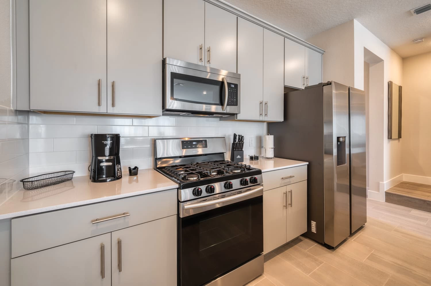 Los townhomes de Spectrum+ cuentan con un garaje privado y un plano abierto que fluye ingeniosamente a través de las áreas de estar, combinando magistralmente la privacidad en el dormitorio con espacios de flujo libre que destacan un ambiente moderno y luminoso. Las características de diseño y los acabados de lujo completan las residencias con la calidad que se espera en las casas de precio mucho más alto.