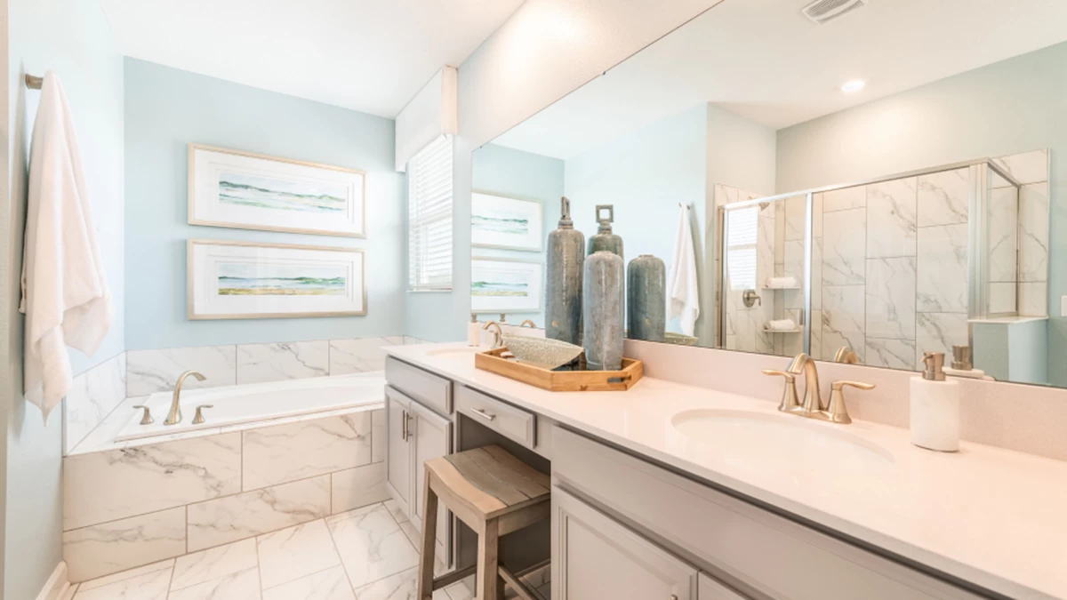 Esta villa de dos pisos es la más grande de la colección y ofrece suites dobles para propietarios en el segundo piso. El primer piso cuenta con un diseño abierto en la cocina, el comedor y la sala familiar con dos entradas independientes que conducen al patio y la piscina privada. Arriba hay cinco habitaciones en total y un cómodo loft.