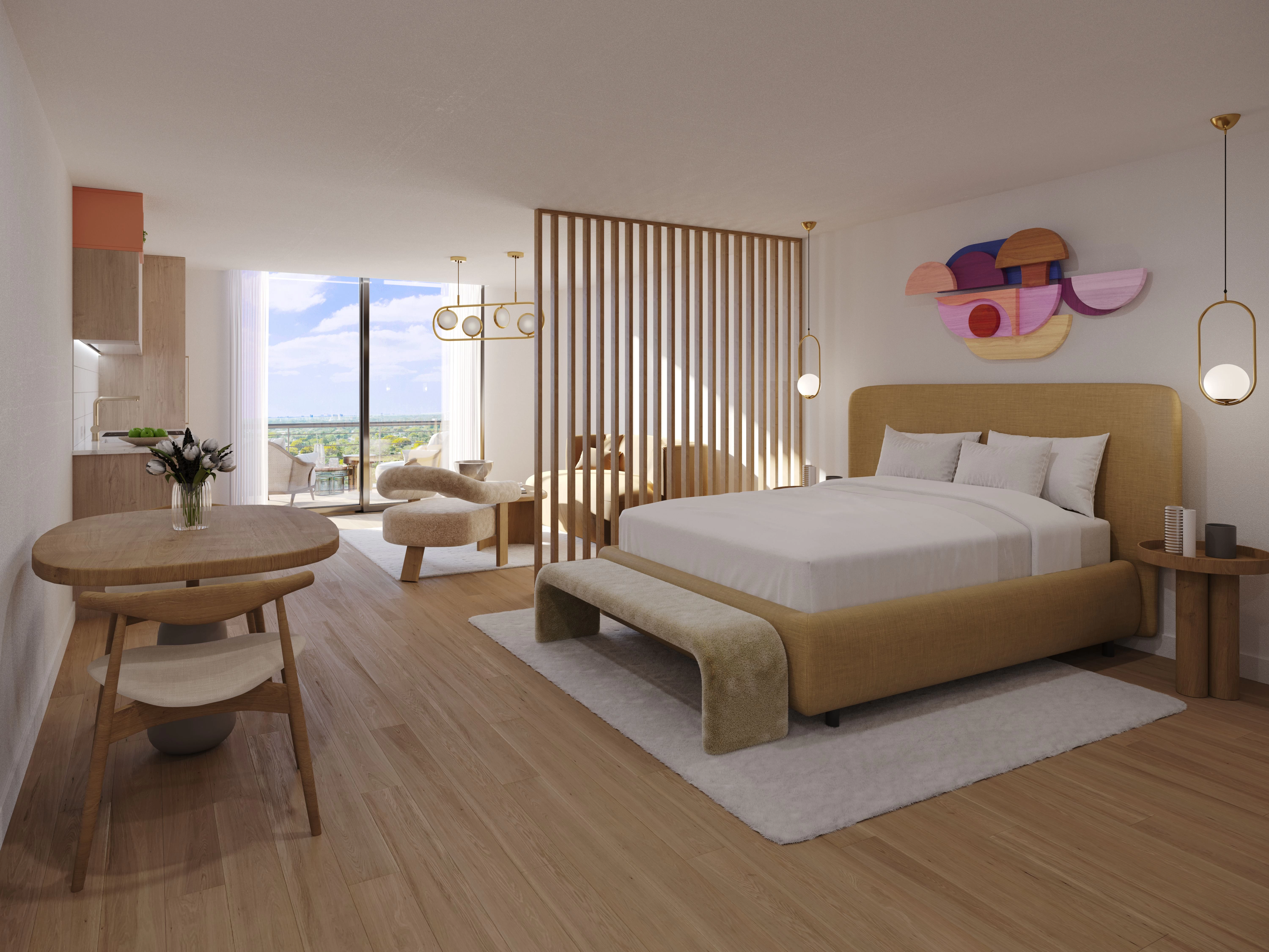 Las residencias expresarán el estilo y el espíritu que solo The Standard puede ofrecer, con interiores meticulosamente curados que brindan el equilibrio perfecto entre estilo y funcionalidad. Los acabados incluyen pisos de porcelanato de madera clara, cocinas modernas con gabinetes italianos hechos a la medida y electrodomésticos Bosch, mientras que los baños exhiben tocadores de piedra y duchas tipo lluvia.
