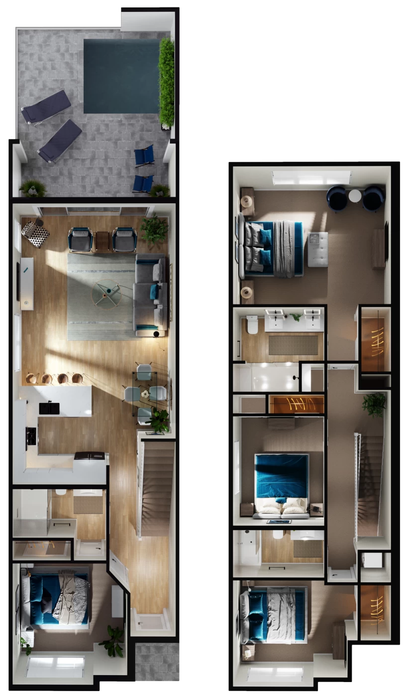 Cada Townhouse Orel cuenta con cuatro habitaciones y ofrece lo mejor de la vida moderna. Un plano de planta amplio y luminoso que cuenta con acabados de lujo estándar, una piscina climatizada privada y un entorno natural sereno.