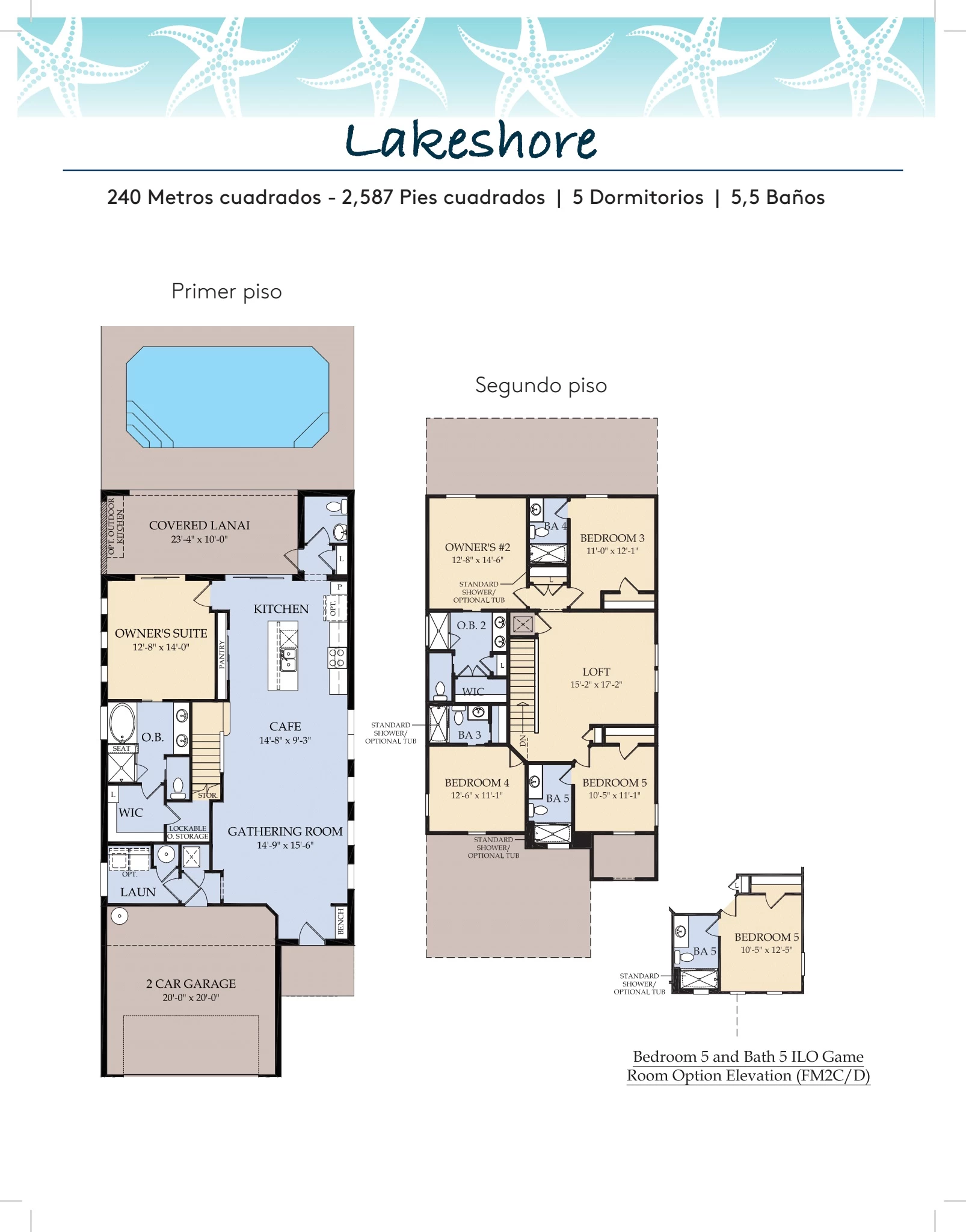 Lakeshore puede ser el más pequeño de los diseños de casas unifamiliares, pero con las 4 habitaciones como suites y una sala de juegos de gran tamaño y un espacio tipo loft, ciertamente no se siente así. Y la piscina privada climatizada con terraza cubierta y baño magnifica tu diversión al aire libre. Agrega la opción de cocina al aire libre y realmente estarás cocinando en la casa vacacional de tus sueños.