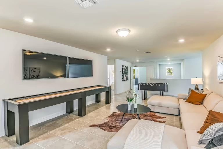 The Baymont le da la bienvenida con una gran entrada y un gran vestíbulo de dos pisos en Kissimmee. Esta es una casa de vacaciones construida para el entretenimiento, que cuenta con una acogedora cocina abierta, comedor y área de reunión. Las puertas corredizas de vidrio de 12' se abren hacia el lanai cubierto, el patio y la piscina privada, perfectos para el entretenimiento en interiores y exteriores.