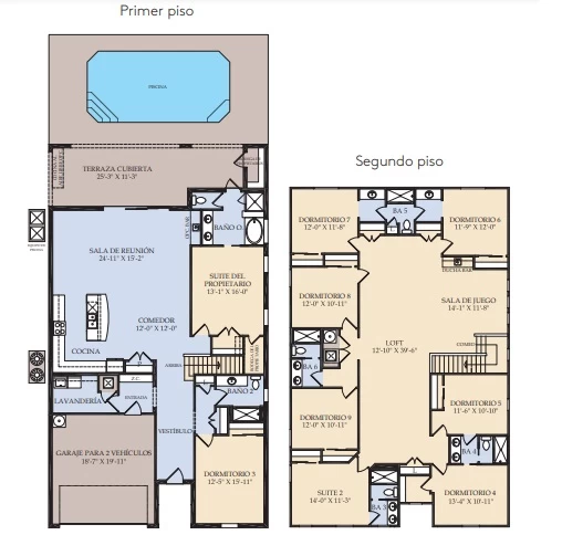 El Clearwater de nueve habitaciones puede ser realmente su hogar lejos del hogar o un destino para una escapada de fin de semana con amigos y familiares. La Suite para el propietario está convenientemente ubicada en el primer piso, junto con la cocina de gran tamaño y la sala de reunión abierta. Arriba, encontrará 675 pies cuadrados de espacio de sala de juegos/loft además de 6 dormitorios más y otra suite. Este diseño de casa puede alojar cómodamente hasta 20 invitados.
