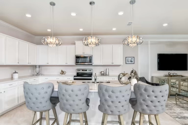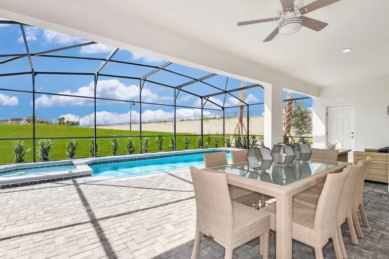 Con hermosos gabinetes de abedul, molduras de techo, electrodomésticos de acero inoxidable y una piscina privada climatizada, esta casa seguramente brindará una vida de vacaciones de lujo.