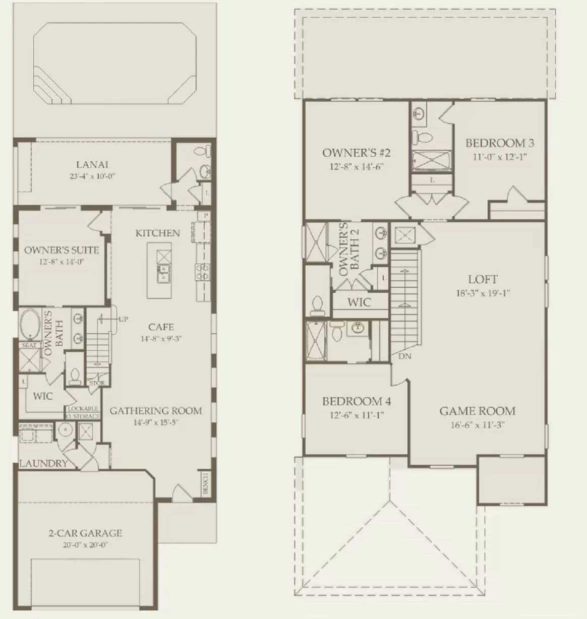 ¿Buscas una casa de vacaciones más pintoresca? El Lakeshore es un plano bien pensado con dos suites para el propietario y dos o tres dormitorios adicionales. Una sala de juegos de gran tamaño y un espacio tipo loft hacen de esta casa un excelente lugar para descansar y relajarse tanto para los niños como para los padres, con los dos espacios separados. Y su propio lanai cubierto con piscina privada climatizada completa esta casa: el lugar perfecto para escapar durante las vacaciones.